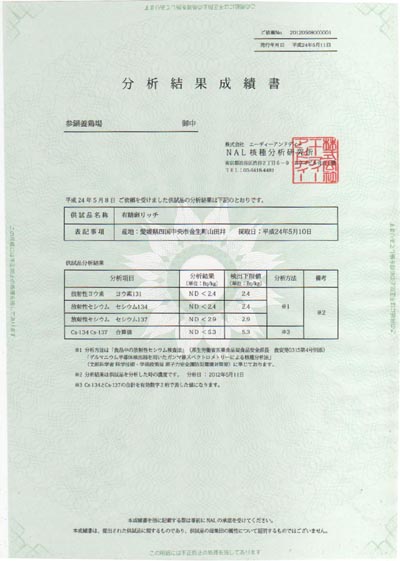 (※放射性セシウム 検出下限値1ベクレルで検出されず)